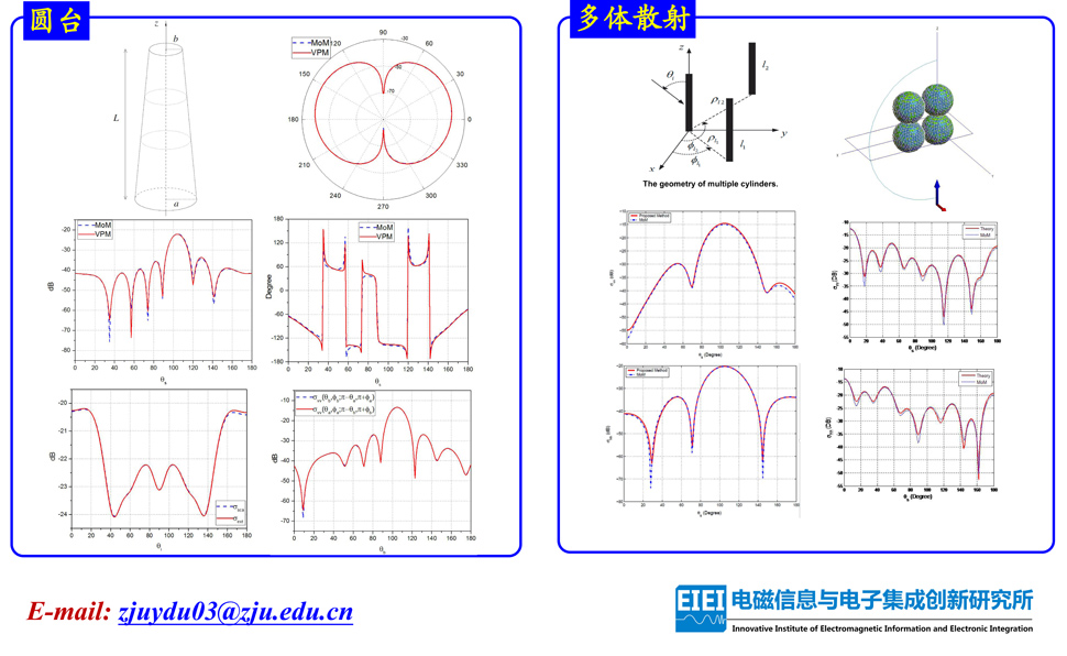 非均匀体散射有很多应用,特别是在植被的微波遥感领域。研究组将T-matrix方法拓展为VPM方法,能准确计算散射幅值和相位,满足能量守恒及互异性定理,并适用于较大的参数范围。相关研究有助于推动相干极化模型以及极化分解理论的发展。