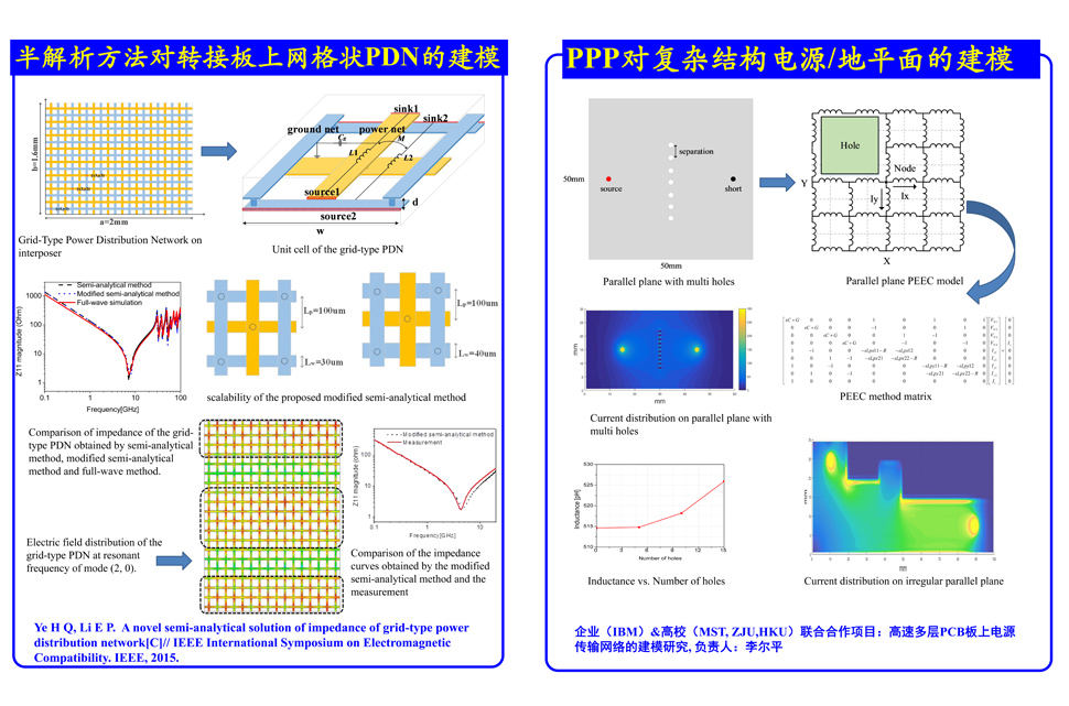 随着集成电路朝着越来越小型化方向的发展,设计高性能、低功耗和高稳定性的电子系统变得越来越具有挑战性。电源完整性(PI)问题成为设计高性能电子系统的瓶颈。PDN阻抗和寄生参数的量化分析是研究PI问题的关键。本课题组从方法层面来对工程实际中的PDN问题进行有益的探讨,通过采用不同的建模方式,对电子系统中不同结构的PDN进行量化分析,指导PDN的前期布局。