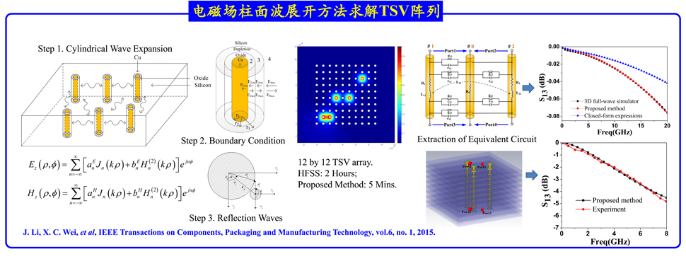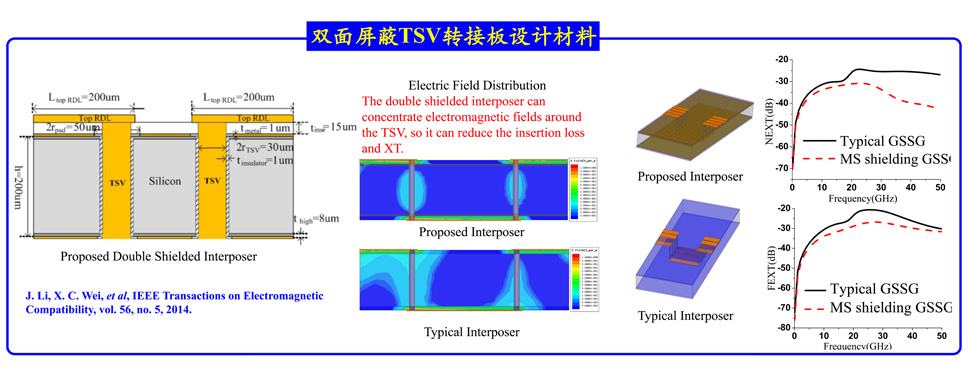 基于硅通孔(TSV)的转接板技术推动工业界向超越摩尔定律发展,在学术界和工业界掀起研究热潮。本课题组致力于研究硅通孔转接板的高频电磁特性、设计硅通孔新型互连结构。国家自然科学基金面上项目(61274110);浙江省自然科学基金重点项目(LZ12F04001)。