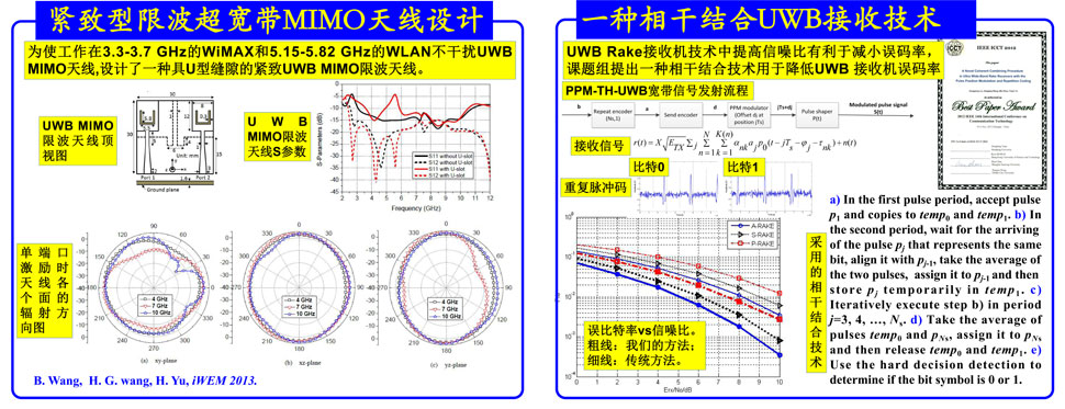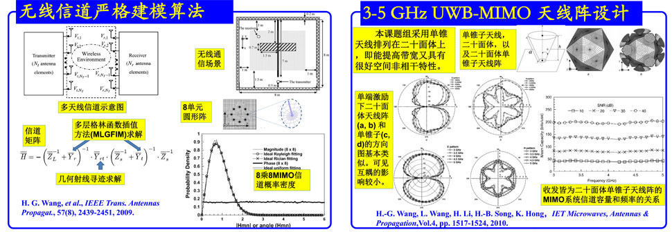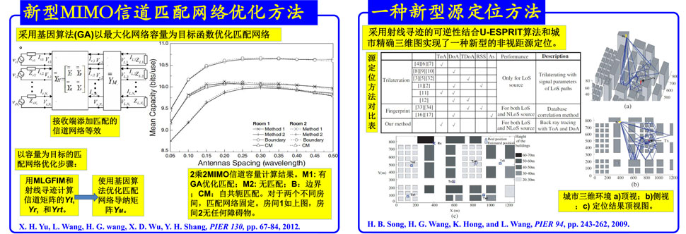 对多入多出(MIMO)信道机理的研究有助于我们优化和应用之,并改进整个链路。课题组首次提出了基于电磁积分方程快速算法(MLGFIM)结合射线寻迹技术的严格三维信道建模算法用于研究和优化信道,并应用信道射线寻迹结合U-ESPRIT技术设计出一种新颖的信号源定位方法,还改进了超宽带链路的分集接收技术。该接收技术获得2012国际通信技术会议(ICCT2012)最佳论文奖。