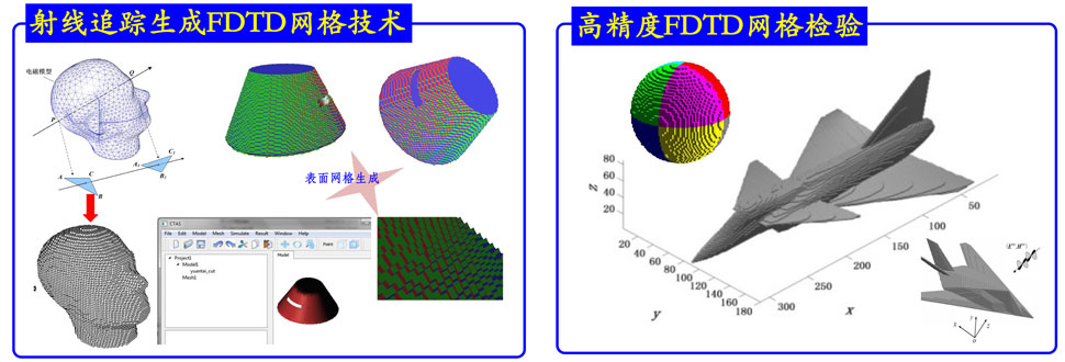 基于射线追踪原理,研究团队自主开发了任意复杂结构高精度FDTD网格生成算法和软件,为不同平台结构中复杂电磁环境效应高效FDTD并行仿真提供了必备的建模工具;该软件已提供给中科院电子学研究所、xx科技大学和中船重工第701研究生等单位。
