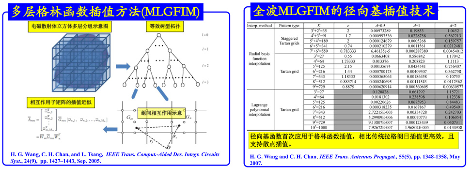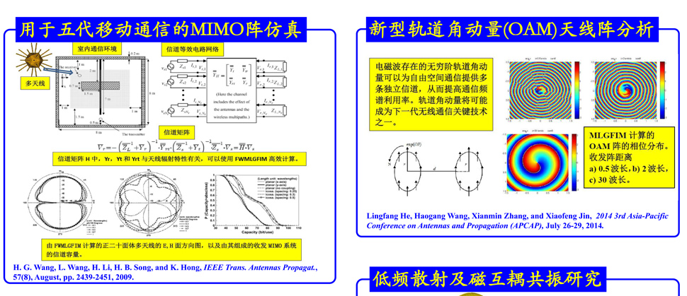 提出的MLGFIM全波算法已被国内外学者用于计算电磁散射问题。相比计算电磁学界其他积分方程算法,更适于快速准确求解低频,近场,以及平面分层等电磁问题。本课题组已将该算法用于仿真无线通信中的新型MIMO天线阵,轨道角动量阵,多层平面阵,及低频磁共振互耦等。